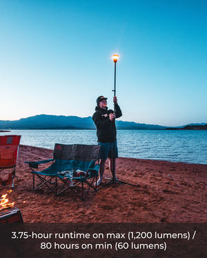 A rechargeable camping light and portable area light that raises overhead to light more space with less glare. The LightRanger 1200 is ideal for camping, overlanding, grilling, backyard nights, and power outages, with up to 1,200 lumens, adjustable 3–9 ft height, USB-C charging, and long runtime in a compact setup.