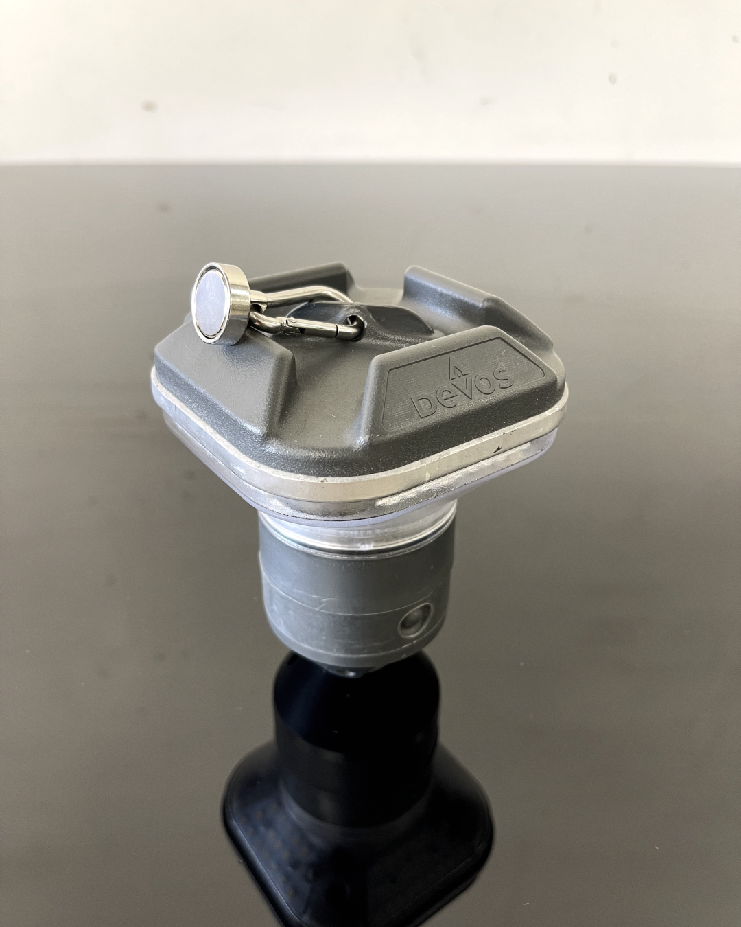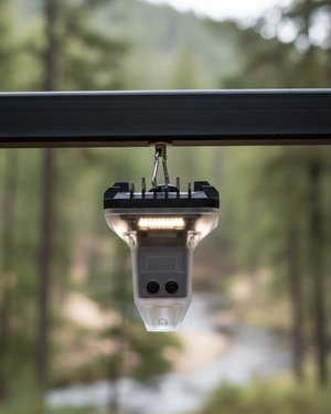 The LightRanger Magnetic Carabiner is designed to attach your LightRanger lantern head to steel surfaces when you need fast, flexible lighting. It is useful for quick setup in places where a tripod or pole is not ideal, including vehicles, shop spaces, camps, and roadside situations. Devos specifically highlights uses like attaching your light to the side of a vehicle, a roof rack bolt, or the latch under your hood.