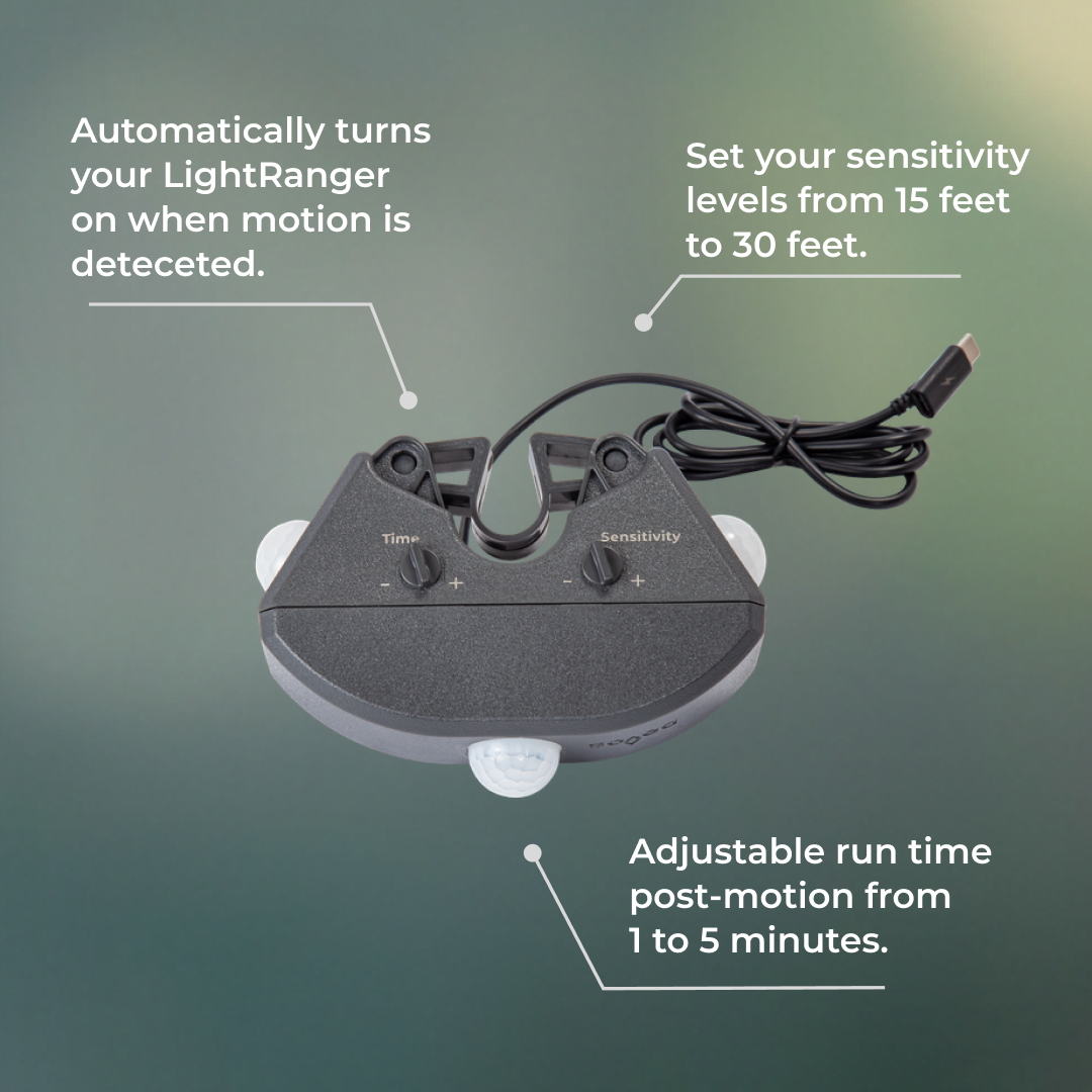 The LightRanger Motion Sensor is compatible with the LightRanger 4000, LightRanger 2000, LightRanger 1200 USB-C, and LightRanger 800 with serial number C123 or higher. It plugs directly into your LightRanger’s USB-C port, so it is important to confirm your light has the correct port and compatibility before ordering.